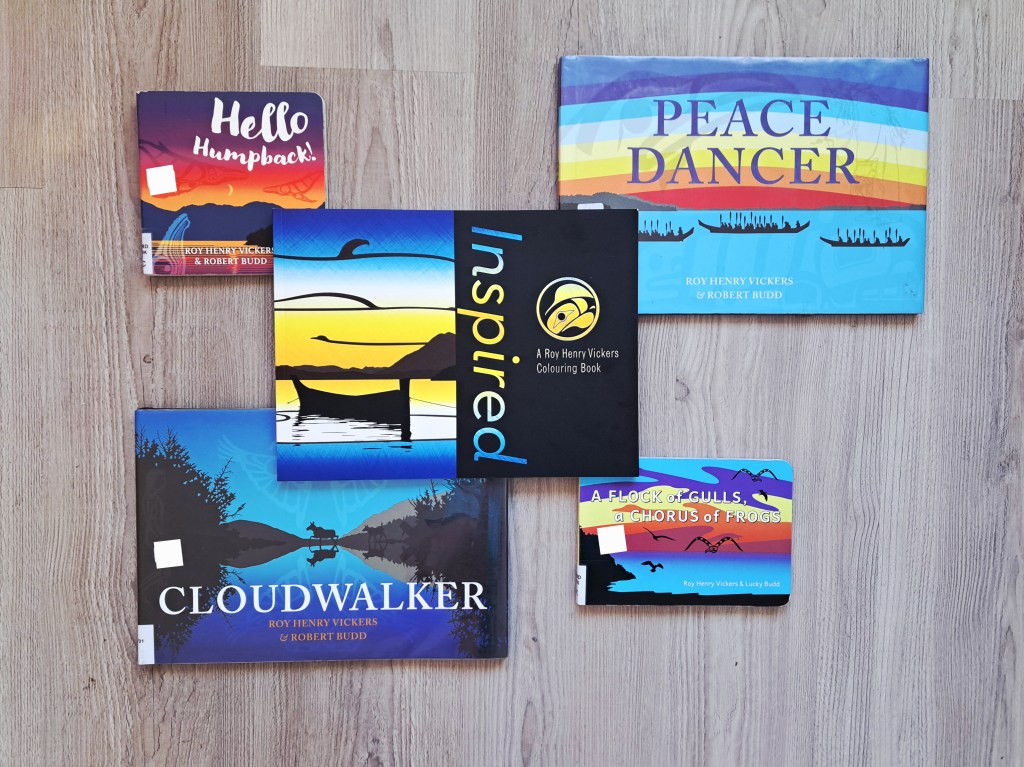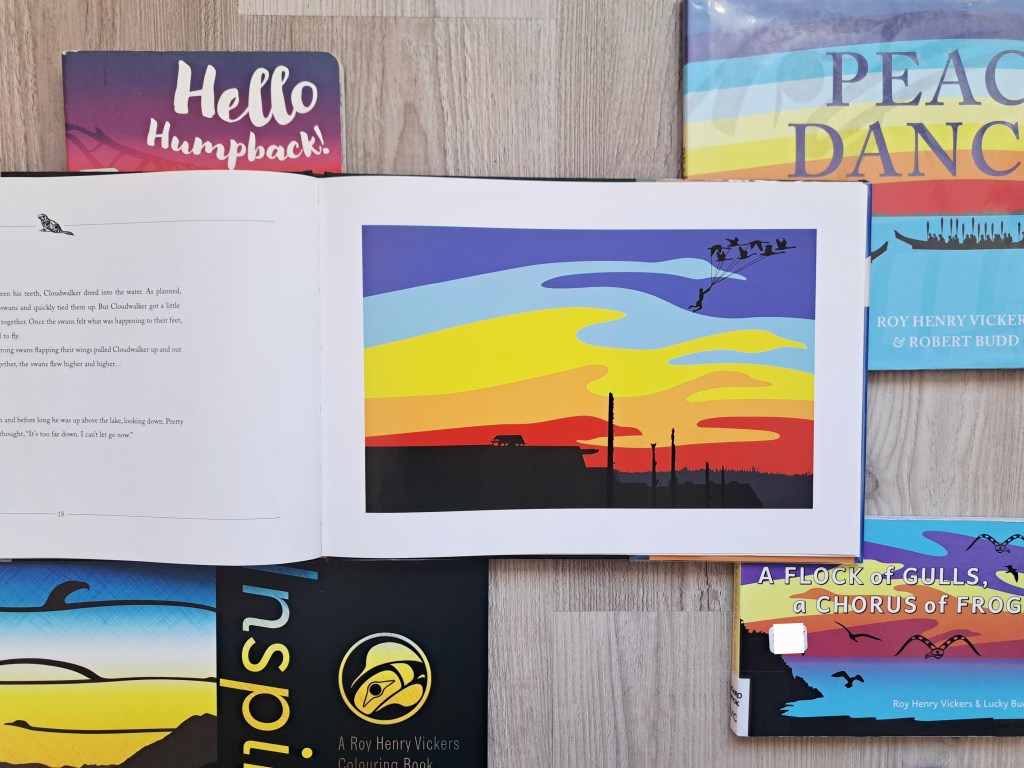 For those who may be unfamiliar, Roy Henry Vickers is a world renowned, highly regarded artist and multi-hyphenate: author, sought-after keynote speaker, carver, painter, printmaker, and designer. Readers may already be acquainted with Roy Henry Vickers’ stunning collaborative work with Canadian author and oral historian Robert “Lucky” Budd in the children’s literature sphere. Vickers’ and Budd have co-created board book and picture book titles such as A is for Anemone, Cloudwalker, Hello Humpback!, Raven Brings the Light, and A Flock of Gulls, A Chorus of Frogs.